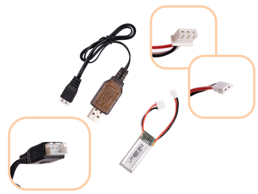 samolotu: akumulator: LiPo 7,4V 300 mAhZasilanie