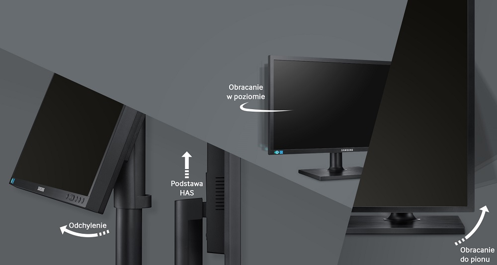 Komfortowe warunki pracy, które zapewnia monitor to idealny sposób na większą produktywność. Unikalne wzornictwo HAS umożliwia regulację monitora w zakresie 130 mm w pionie tak, by znalazł się idealnie na wysokości Twoich oczu. Błyskawicznie dostosujesz ekran do własnych potrzeb jak również do pracy w grupie – obrócisz w zakresie 45°, ustawisz w pionie oraz przechylisz o 3° w przód i 25° w tył. Monitor możesz także zawiesić na ścianie, korzystając z systemu montażu VESA 100×100 oraz zwiększyć estetykę miejsca pracy chowając kable za praktycznym uchwytem.