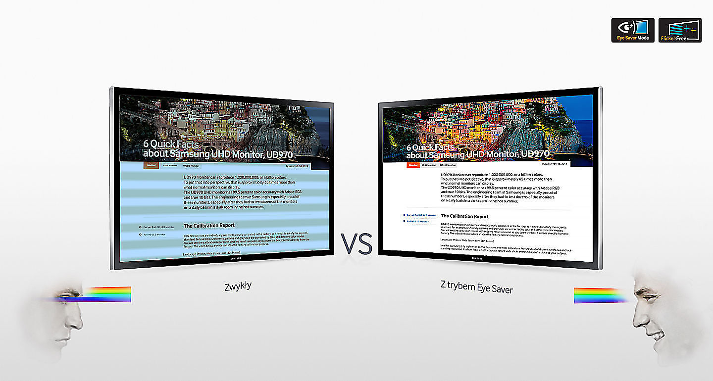 Tryb Eye Saver redukuje emisję światła niebieskiego – najbardziej męczącego wzrok. Wystarczy wciśnięcie jednego przycisku, byś mógł cieszyć się większym komfortem pracy. Monitor wyposażono też w technologię Flicker Free, która redukuje zjawisko migotania obrazu.