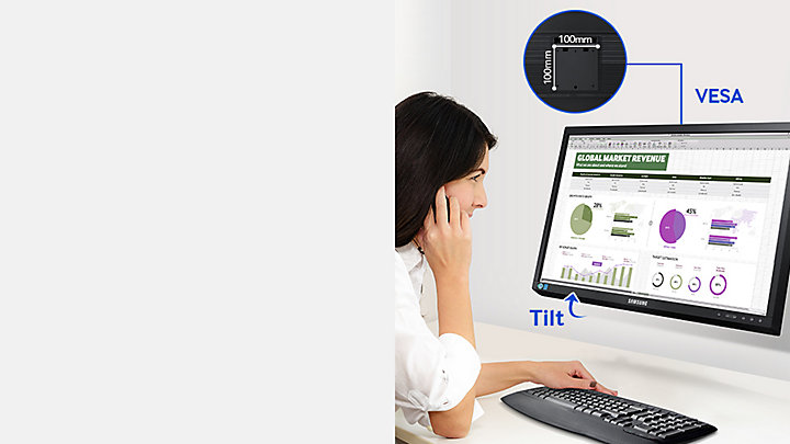 Możliwość montażu na uchwycie VESA: Dzięki możliwości montażu na uchwycie VESA 100 X 100 można łatwo zainstalować go na każdej ścianie. Przechył: Możesz łatwo i sprawnie przechylić ekran do przodu o 20° i do tyłu o 21° i zapewnić sobie komfortowe oglądanie.