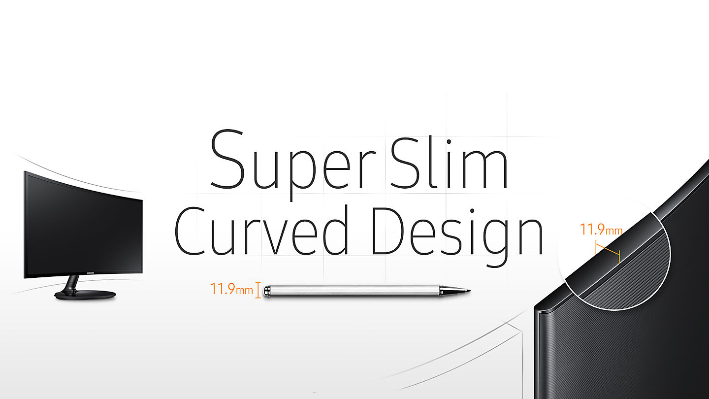- Smukła budowa – monitor curved jest o ponad połowę cieńszy od swoich poprzedników – ma tylko 11,9 mm grubości.