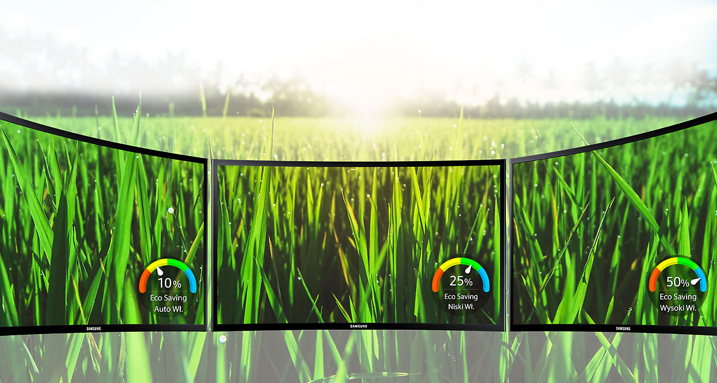 Odkryj zakrzywiony monitor Samsung, który wciąga Cię w sam środek akcji jak mało który. Kształt monitora oparto na okręgu o promieniu 1800 mm, dzięki czemu otacza Twój wzrok, poszerza pole widzenia i zmniejsza ilość odbijanego światła. Nieważne, czy oglądasz film online, ulubiony serial czy pochłonęła Cię gra – z monitorem Samsung każda rozrywka wciągnie Cię jeszcze mocniej.