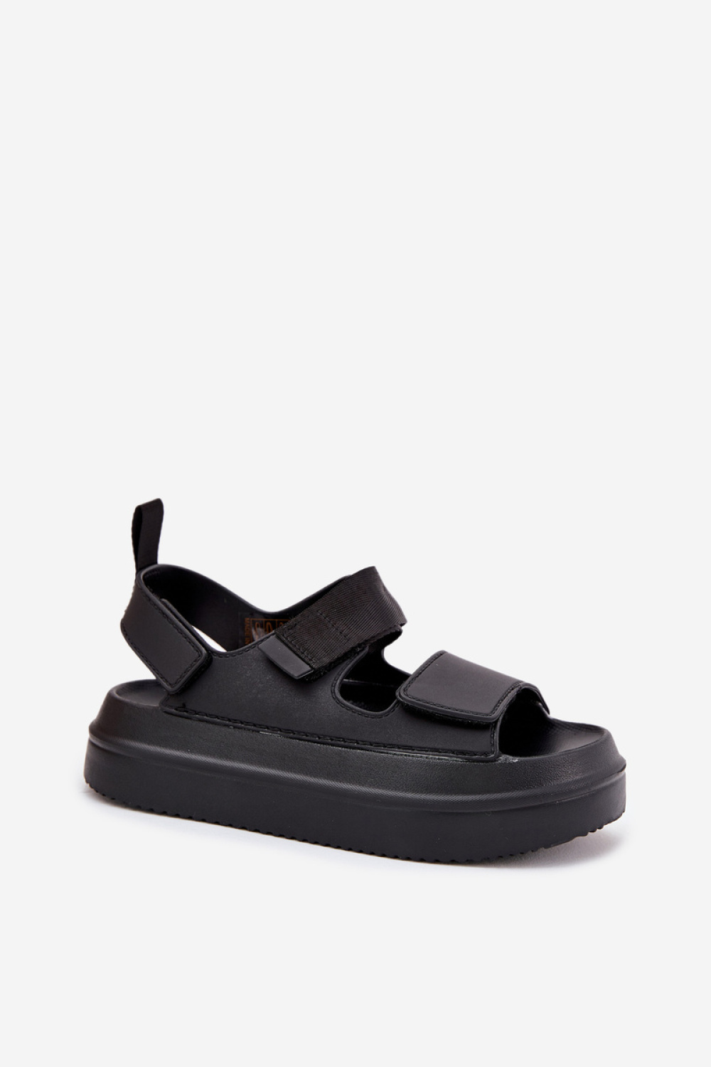 Damskie sandały z eko skóry to doskonała propozycja na ciepłe dni. Osadzone na platformie, która subtelnie uniesie sylwetkę. Model zapinany na dwa rzepy z przodu oraz jeden z tyłu gwarantuje idealne dopasowanie do stopy. Te sandały będą doskonałym wyborem do wielu letnich stylizacji.