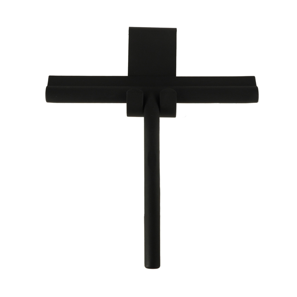 Ściągaczka do wody z kabiny prysznicowej. Pomoże uporać się z zaciekami oraz plamami po kamieniu z wody. Dzięki niej sprzątanie będzie dużo przyjemniejszej. Tworzywo: silikon. W zestawie uchwyt do zawieszenia myjki. Kolor: czarny. Wymiary: 21 x 19 cm.