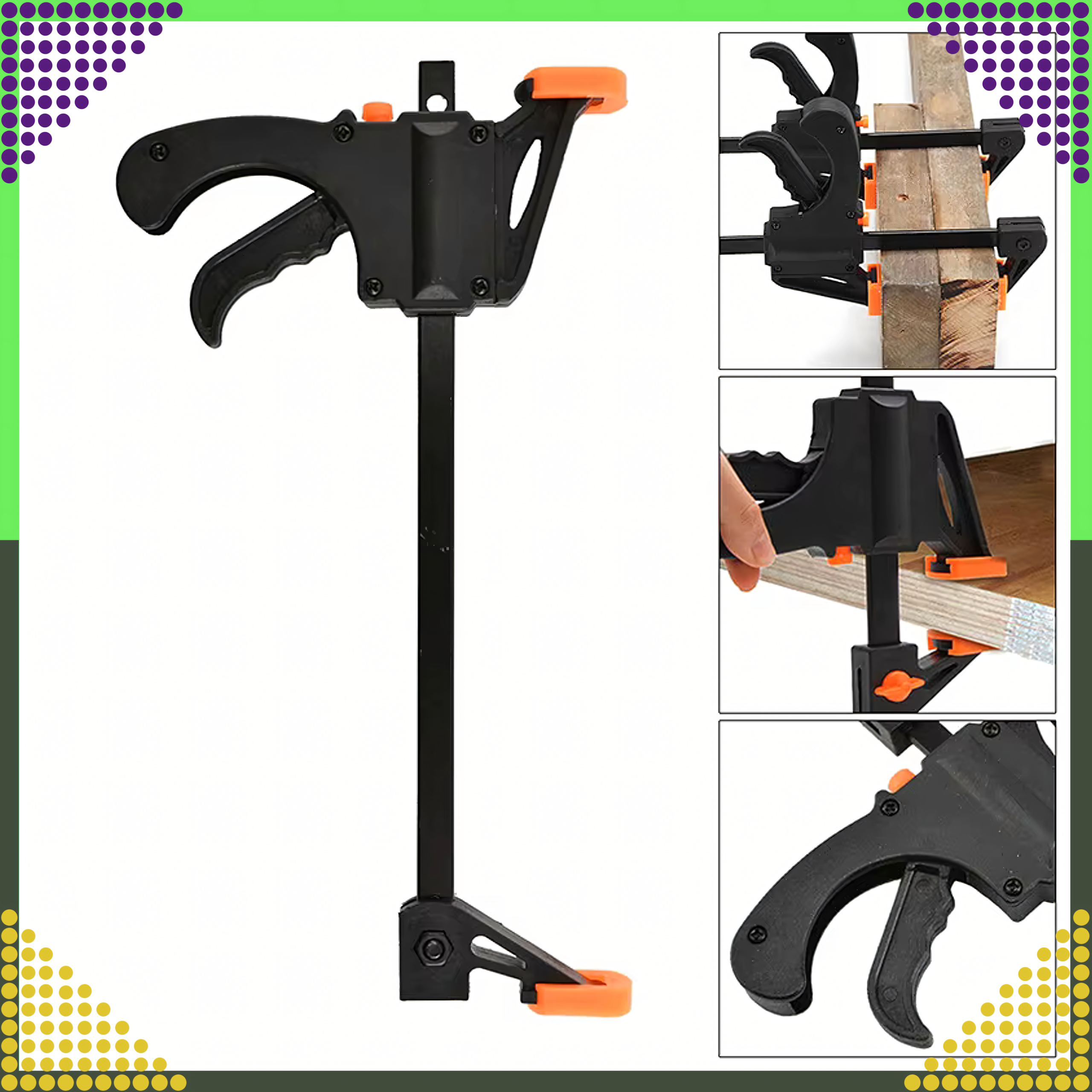 Stolarski, jednoręczny ścisk samozaciskowy. Niezbędny podczas pracy i majsterkowania przy drewnie. Zdecydowanie ułatwia montaż elementów drewnianych i połączeń kołkowych. Przeznaczony do ściskania i rozszerzania materiału. Wykonany z solidnego tworzywa, zapewniającego dużą trwałość. Wyposażony w dwie nakładki dociskowe po obu stronach.