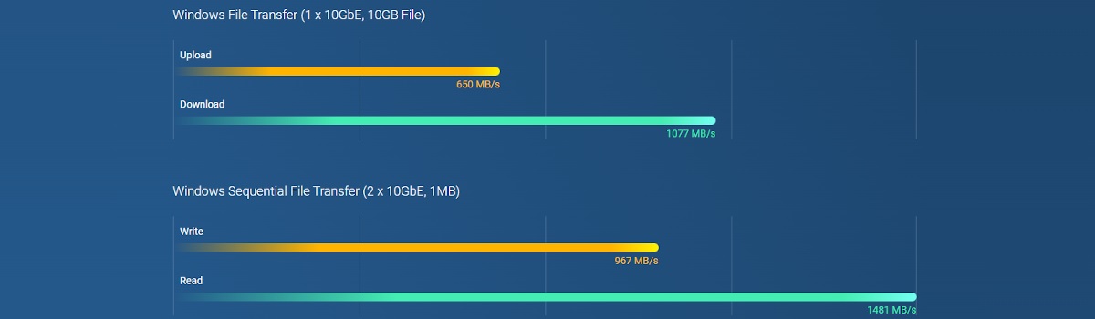 Model TS-462 jest wyposażony w dwurdzeniowy procesor Intel® Celeron® N4505 (o taktowaniu zwiększanym do 2,9 GHz), pamięć obsługuje dyski SATA 6 Gb/s. Mechanizm szyfrowania Intel® AES-NI zwiększa wydajność szyfrowania przy jednoczesnym zapewnieniu bezpieczeństwa danych NAS. Użytkownik może elastycznie instalować dyski SSD NVMe w gniazdach M.2 PCIe w celu przyspieszenia z użyciem pamięci podręcznej, aby zmaksymalizować wydajność sieci i pamięci masowej dla aplikacji intensywnie przetwarzających dane lub włączyć funkcję Qtier do automatycznego poziomowania pamięci masowej w celu zwiększenia jej wydajności.