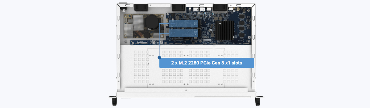 Model TS-464eU obsługuje buforowanie SSD i jest wyposażony w dwa gniazda M.2, które obsługują dyski SSD M.2 PCIe NVMe z obudową 2280 (sprzedawane oddzielnie) w celu zwiększenia ogólnej wydajności NAS. Technologia Qtier™ może być również wykorzystana do wzbogacenia modelu TS-464eU o funkcję automatycznego poziomowania, która pomaga stale optymalizować wydajność pamięci masowej na wszystkich zainstalowanych urządzeniach pamięci masowej.