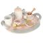 – w skład zestawu wchodzą filiżanki, talerzyki, czajnik, dzbanek na mleko,