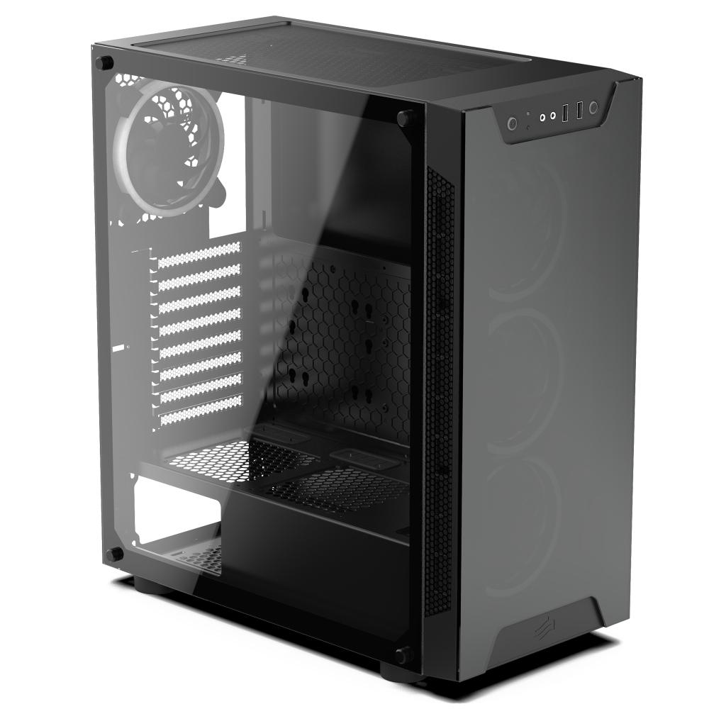 Dołączone do obudowy cztery wentylatory Sigma HP Corona RGB 120 mm nie tylko zapewniają odpowiednio wysoki przepływ powietrza, ale trzy z nich gustownie rozświetlają przeszklony front obudowy. Czwarty wentylator znajduje się na tylnej ściance.