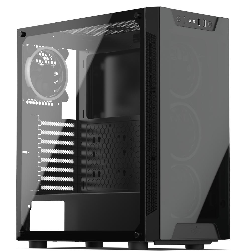 - Dwa panele ze szkła hartowanego: z boku oraz z przodu.