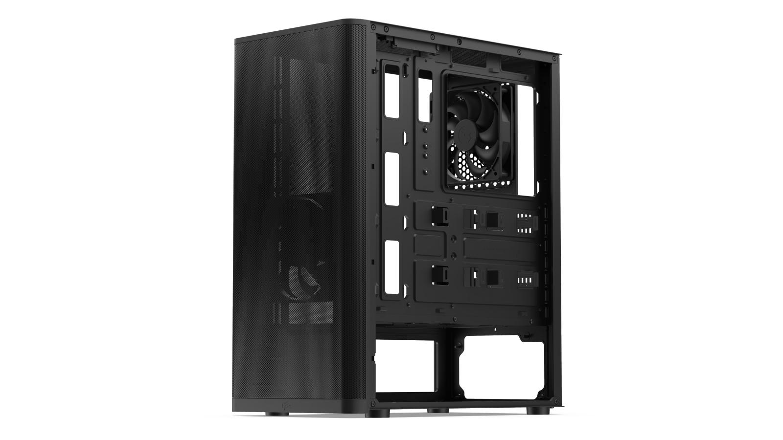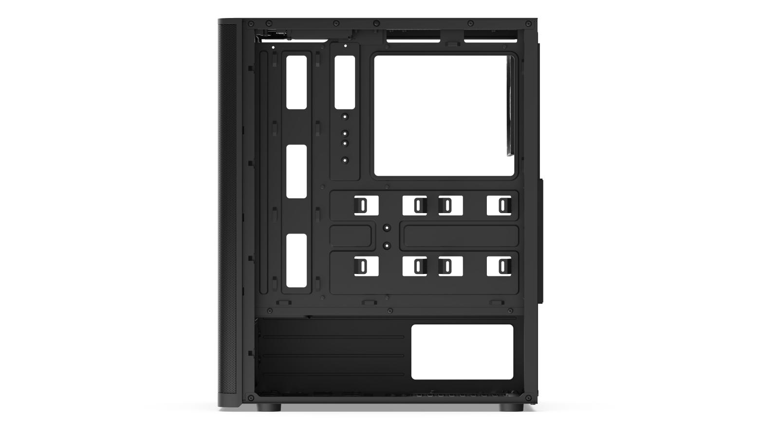System wentylacji obudowy Ventum VT2 TG można rozbudować do maksymalnie 8 wentylatorów 120 mm (trzy z przodu, dwa na górze, jeden z tyłu oraz dwa na osłonie dolnej komory). Wentylatory w rozmiarze 140 mm zmieszczą się w liczbie dwóch z przodu obudowy. Za odpowiednią wentylację wnętrza obudowy Ventum VT2 TG i niskie temperatury zainstalowanych komponentów odpowiada nie tylko specjalnie zaprojektowany otwarty front o ultrawysokim przepływie powietrza, ale także dwa wysokociśnieniowe wentylatory Sigma HP 120 mm CF.