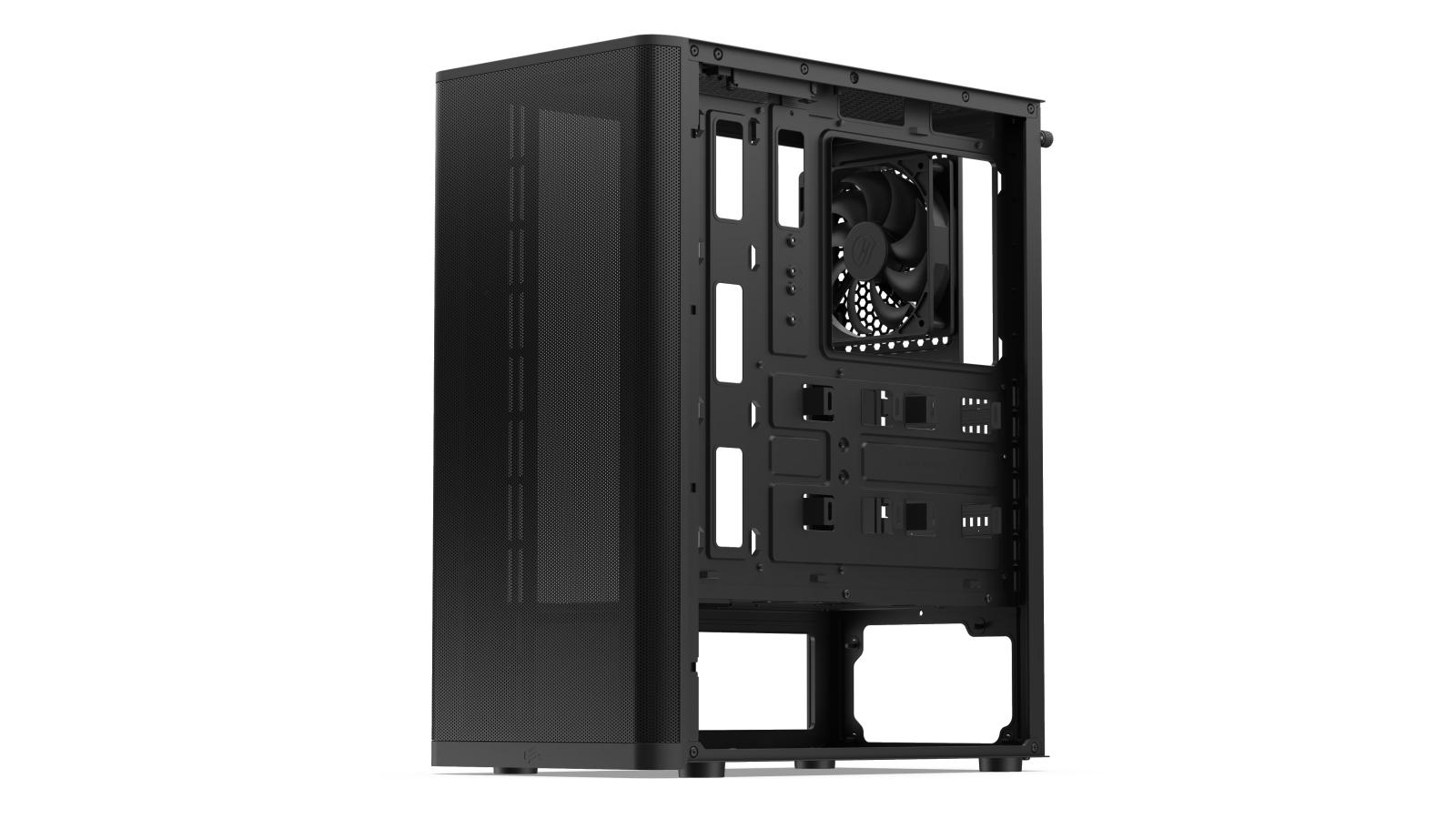 System wentylacji obudowy Ventum VT2 można rozbudować do maksymalnie 8 wentylatorów 120 mm (trzy z przodu, dwa na górze, jeden z tyłu oraz dwa na osłonie dolnej komory). Wentylatory w rozmiarze 140 mm zmieszczą się w liczbie dwóch z przodu obudowy. Za odpowiednią wentylację wnętrza obudowy Ventum VT2 i niskie temperatury zainstalowanych komponentów odpowiada nie tylko specjalnie zaprojektowany otwarty front o ultrawysokim przepływie powietrza, ale także wysokociśnieniowy wentylator Sigma HP 120 mm CF