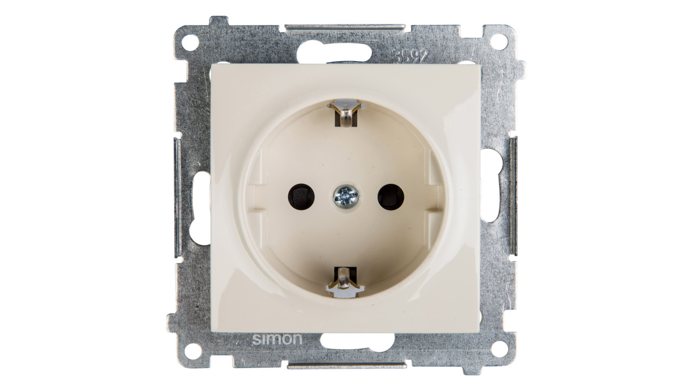 Simon 54 Gniazdo pojedyncze SCHUKO z/u 16A IP20 z przesłoną torów kremowe DGSz1Z.01/41