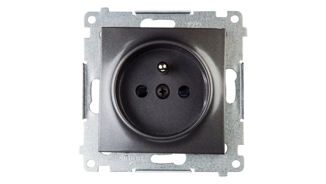 Simon 54 Gniazdo pojedyncze z/u 16A IP20 z przesłoną torów antracyt DGZ1Z.01/48