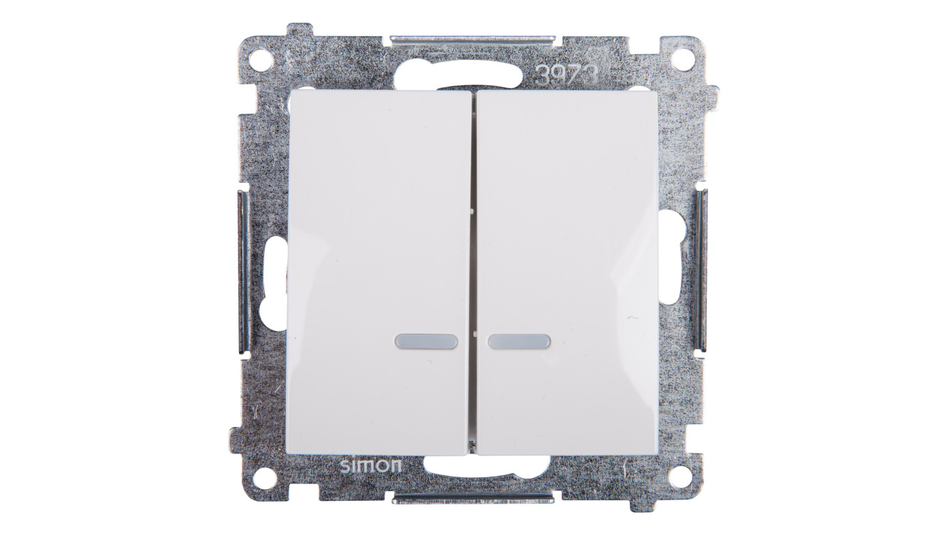Simon 54 Łącznik bryzgoszczelny świecznikowy IP44 z podświetleniem, szybkozłącza, biały DW5BL.01/11