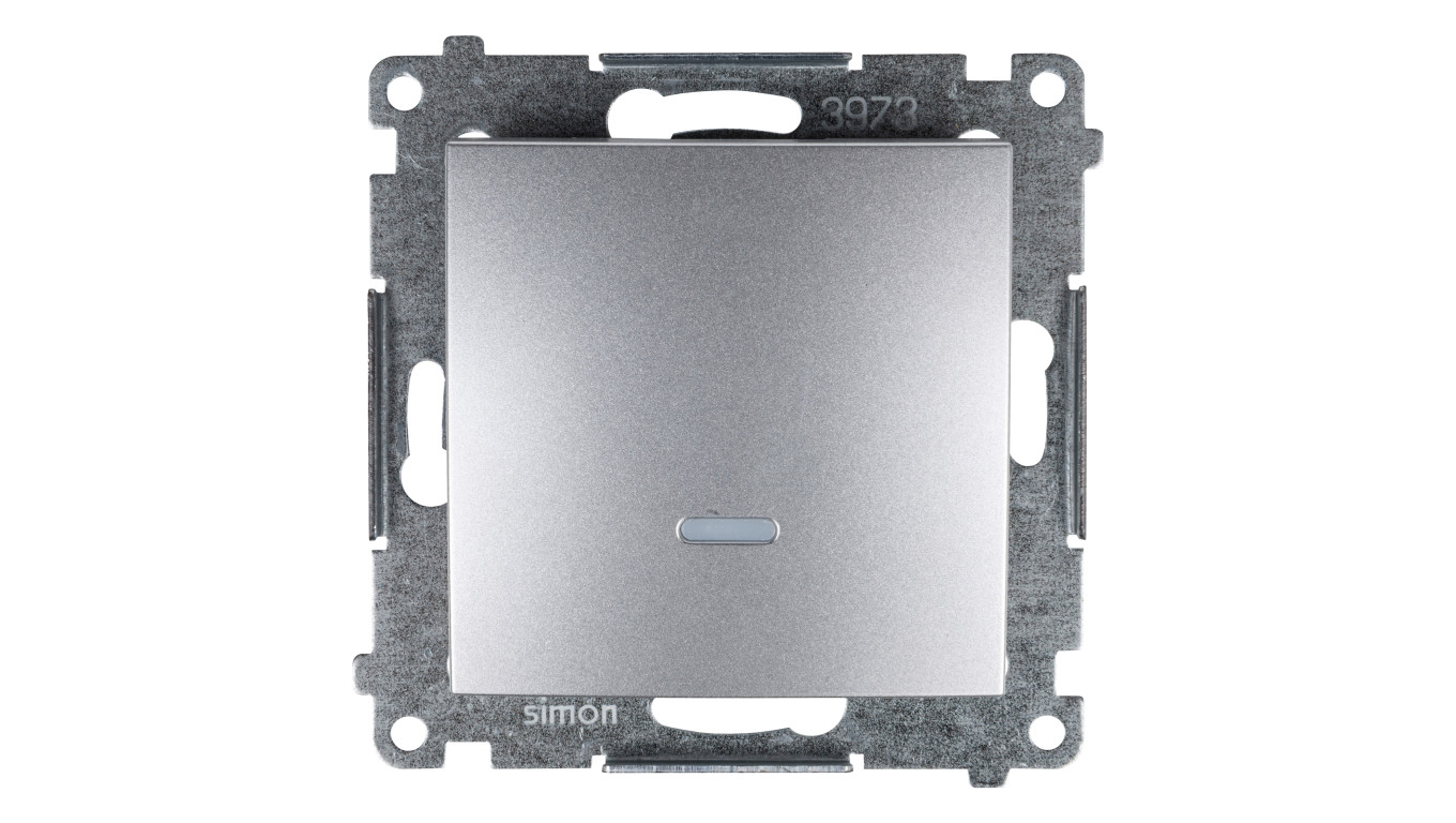 Simon 54 Łącznik jednobiegunowy z podświetleniem, szybkozłącza, srebrny mat DW1L.01/43