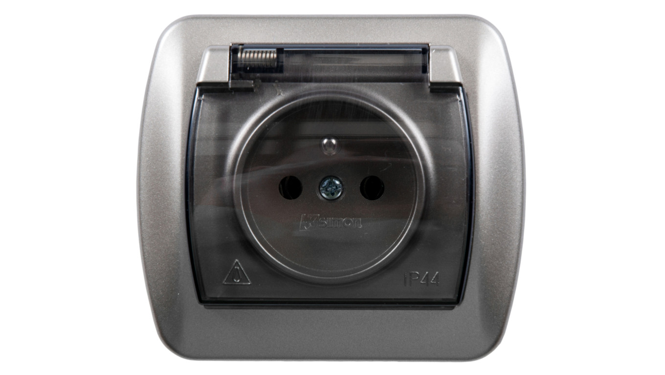 Simon Akord Gniazdo bryzgoszczelne z/u IP44 z klapką dymną satyna metalizowana AGZ1Be/29a