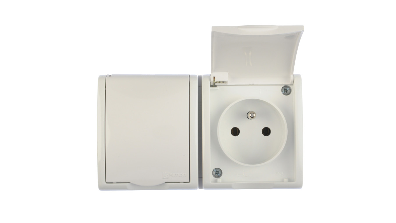 Simon Aquarius Gniazdo hermetyczne podwójne z/u IP54 z klapką pełną białe AQGZ1-2/11