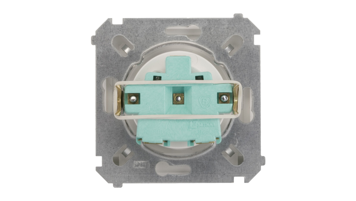 Simon Basic Gniazdo bryzgoszczelne z/u IP44 z przesłoną torów i klapką białe BMGZ1Bz.01/11