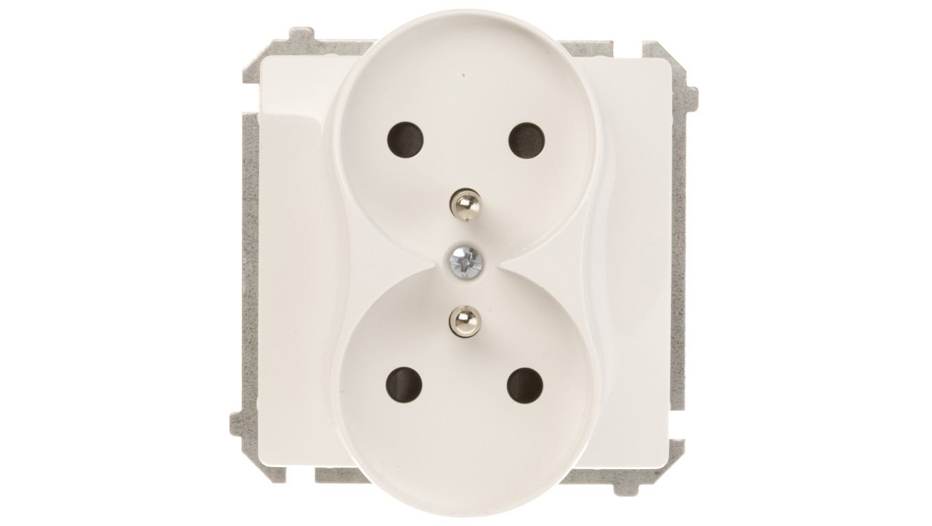 Simon Basic Gniazdo podwójne z/u 16A IP20 z przesłoną torów białe BMGZ2Mz.01/11
