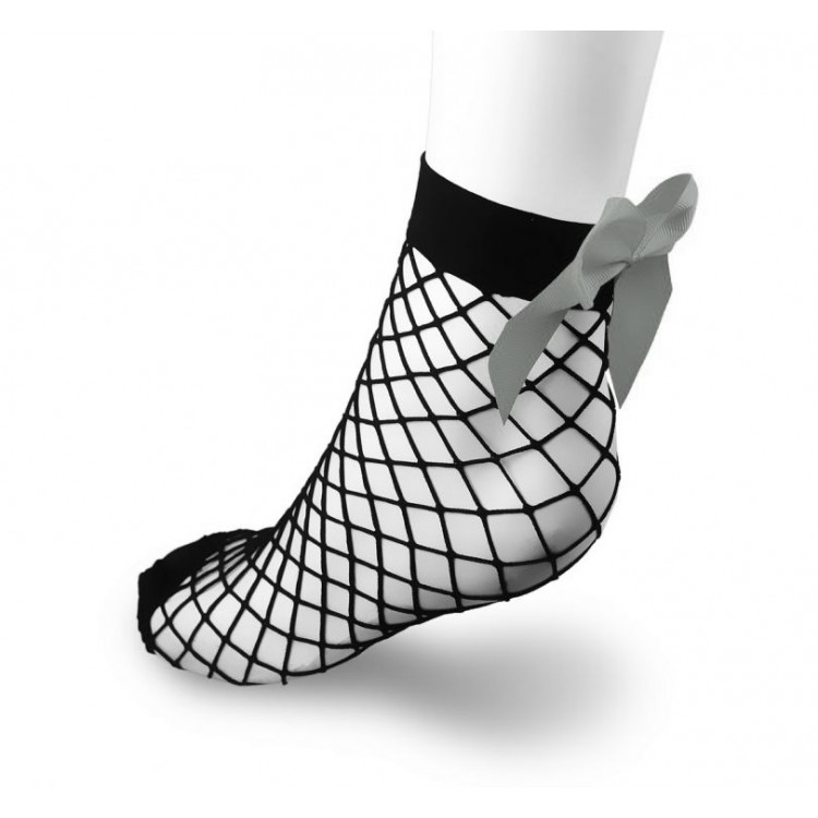 Skarpetki kabaretki z dużymi oczkami i uroczą kokardką z tyłu.Bardzo rozciągliwe, idealnie dopasowujące się do stopy. Rozmiar UniwersalnyKolor czarny z szarąą kokardą