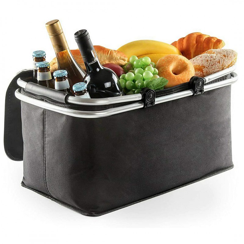 Składany kosz termiczny na zakupy, piknik czarny 47x27x23cm KP01CZ