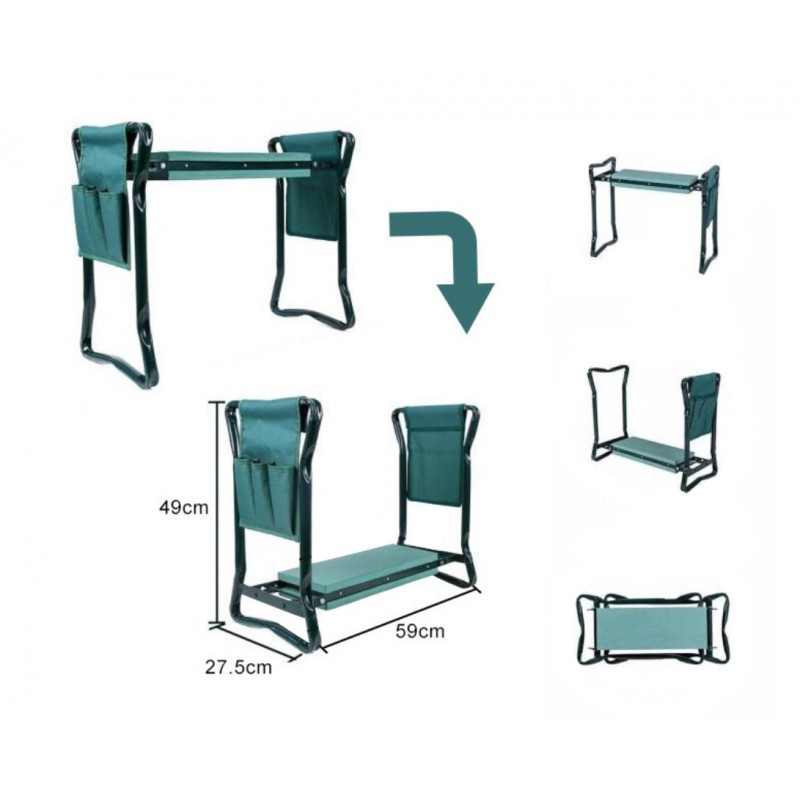 Składany taboret, krzesło, klęcznik ogrodowy 3w1 z kieszonkami 60 x 49 x 25 cm KRT04