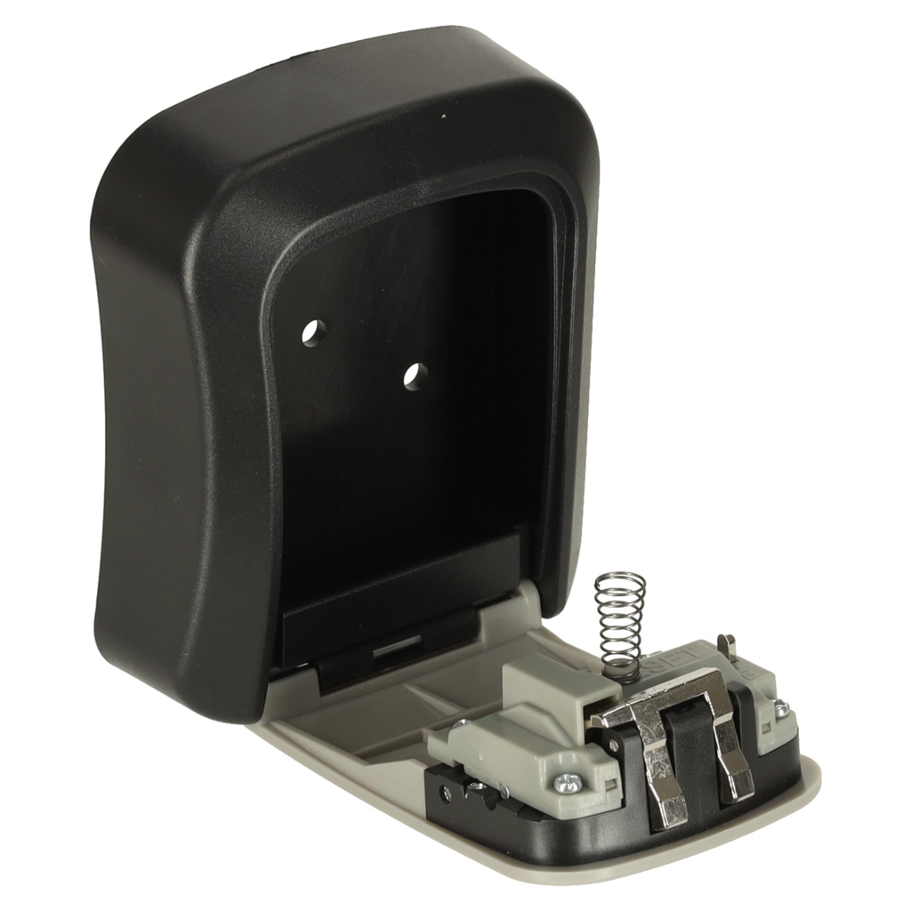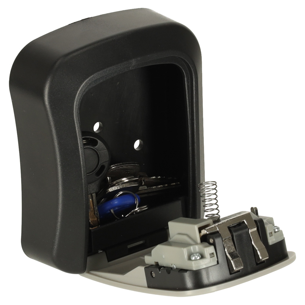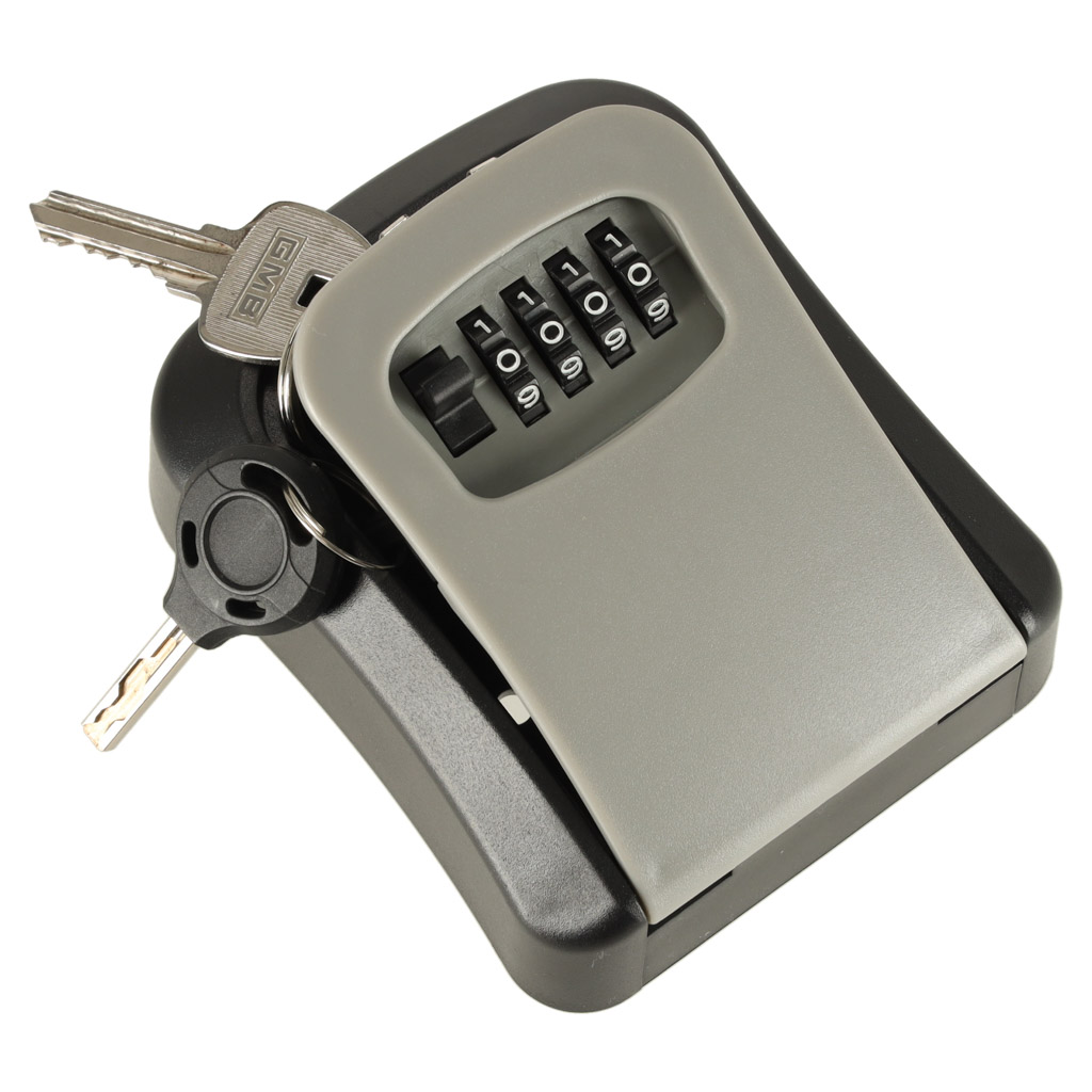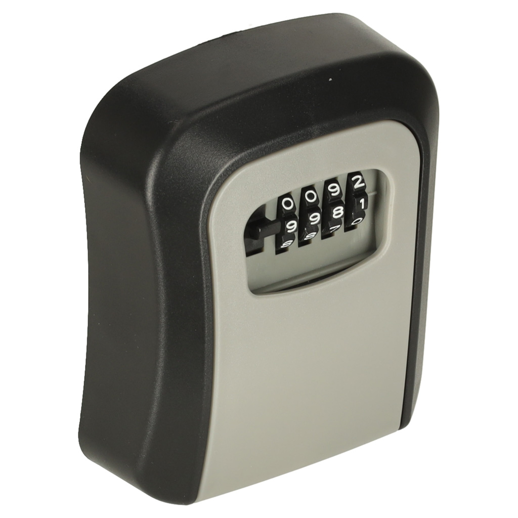 Mocowany na ścianę zamek na 4-cyfrowy kod. Przechowa klucze, biżuterię i inne drogocenne przedmioty. Po wpisaniu złego kodu blokuje dostęp do zawartości. Wymiary zewnętrzne: 12 cm x 9 cm x 4 cm, wymiary wewnętrzne: 10 cm x 7 cm x 3 cm