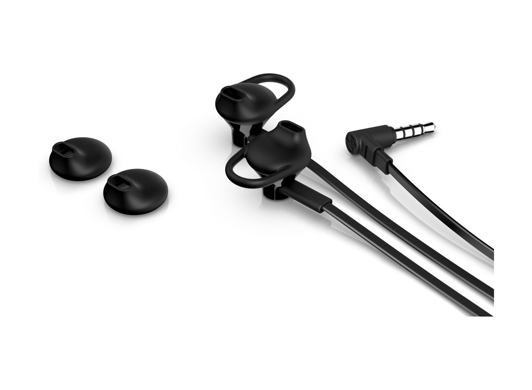 Zwiększ doznania słuchowe i uwolnij swoje ręce podczas odbierania połączeń dzięki tym czarnym słuchawkom dousznym wyposażonym w wygodny wbudowany mikrofon.