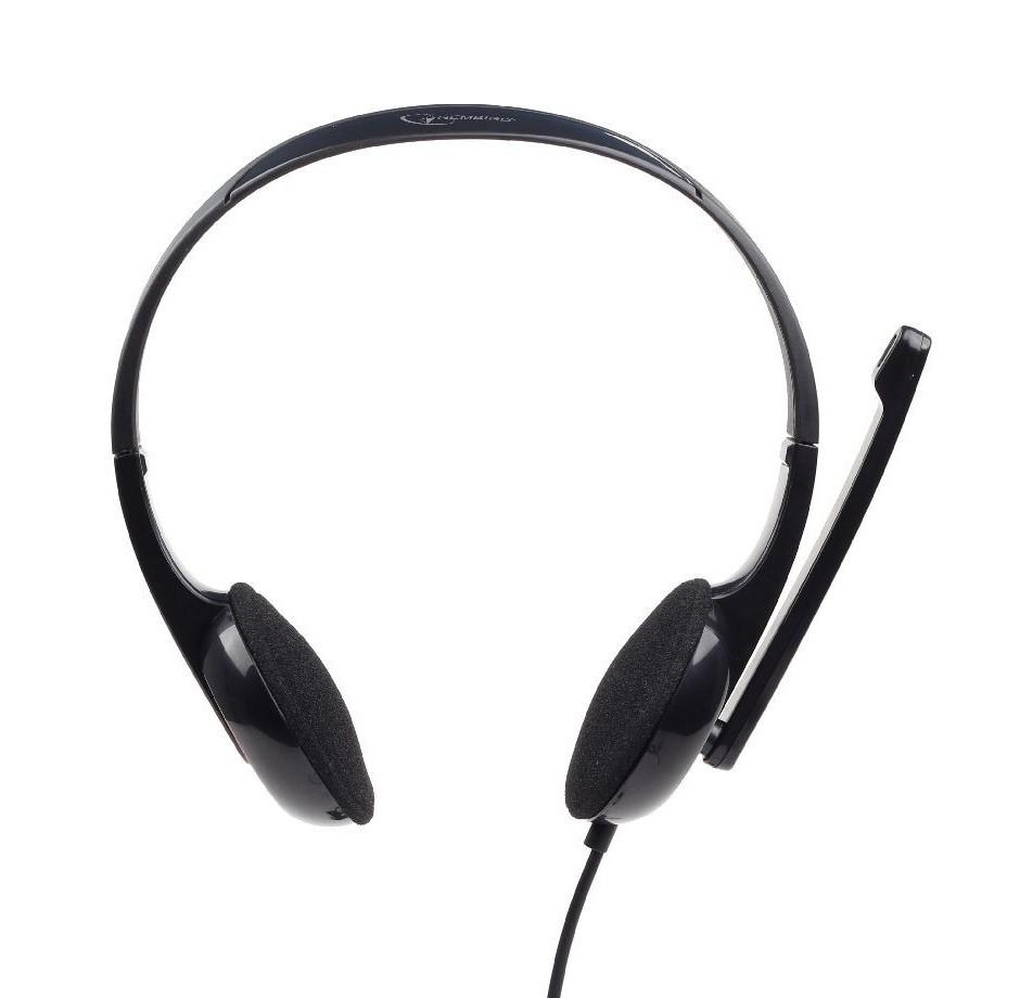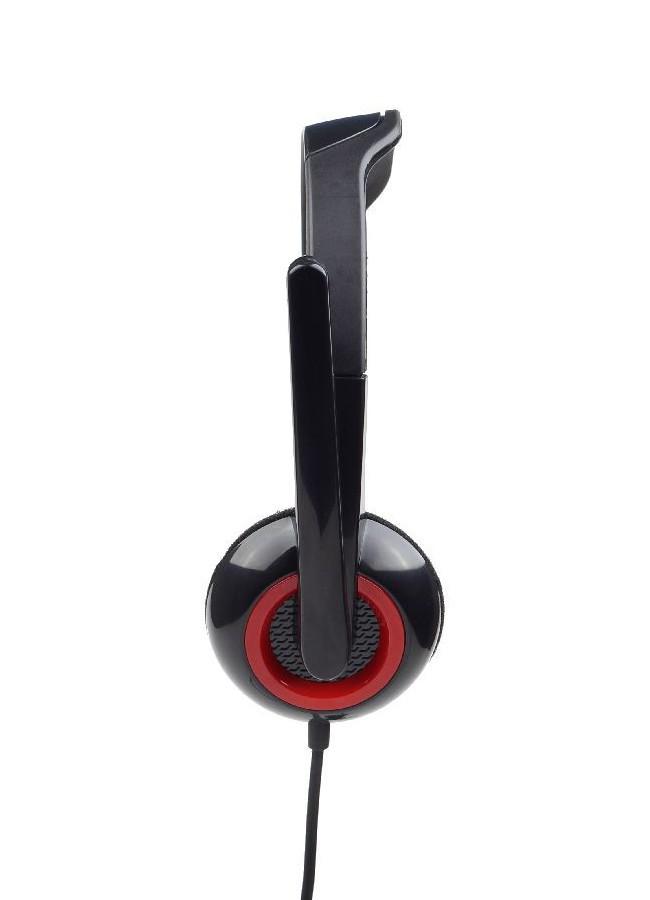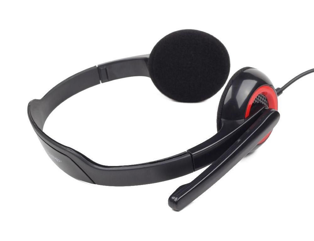 Zestaw słuchawkowy z obrotowym wysięgnikiem mikrofonu. Posiada praktyczne sterowanie głośności zamocowane na kablu, z opcją wyciszenia mikrofonu i wygodny, regulowany pałąk. Duże wygodne nauszniki zapewniają komfort podczas użytkowania.