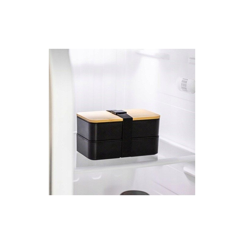 Podwójny pojemnik LUNCH BOX z pokrywką bambus i sztućcami