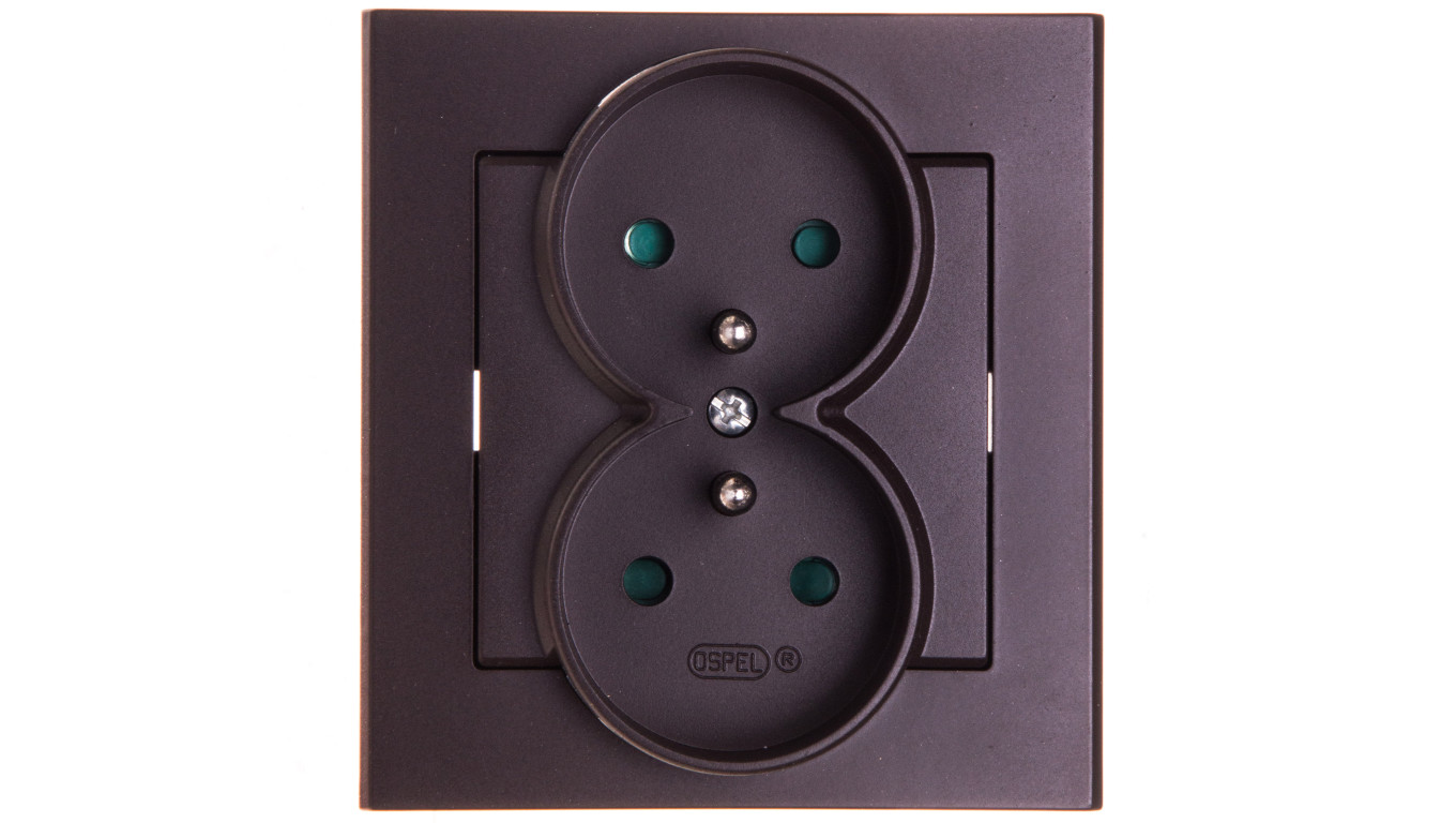 SONATA Gniazdo podwójne z/u z przesłonami czekoladowy metalik GP-2RZP/40