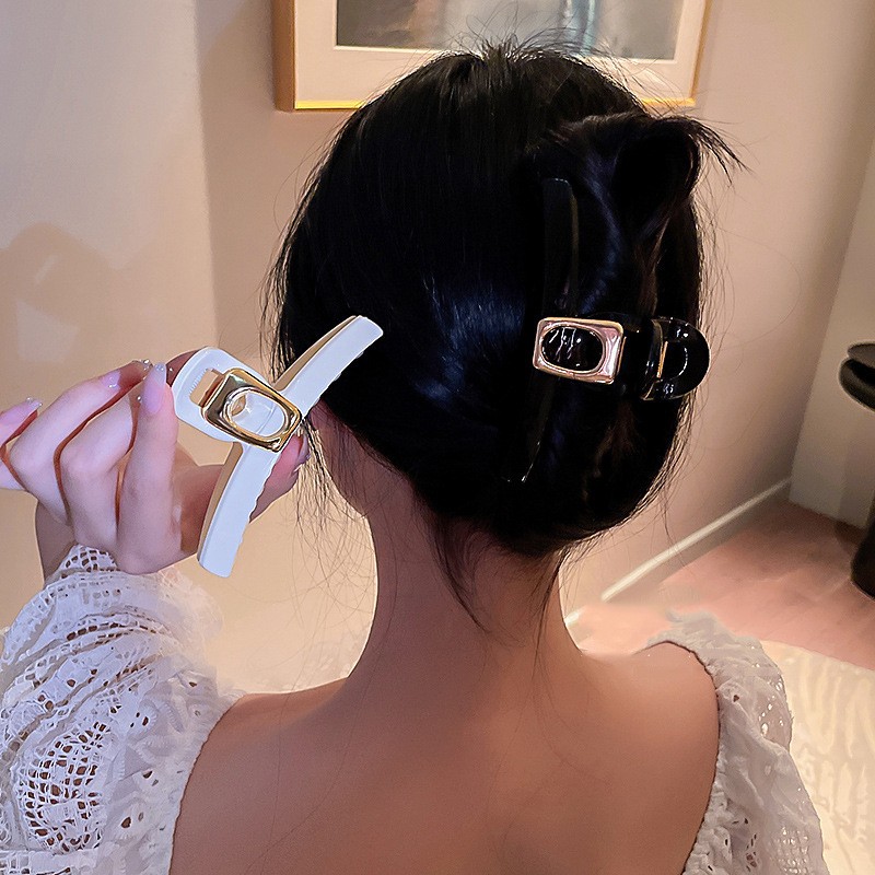 Spinka do włosów, klamra biała ze złotą ozdobą 11cm SP304B