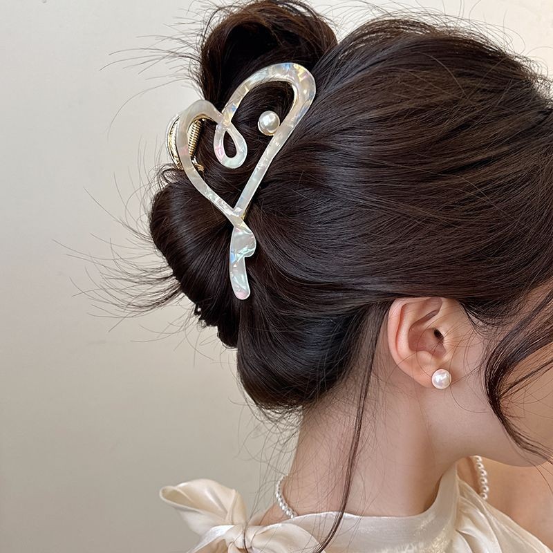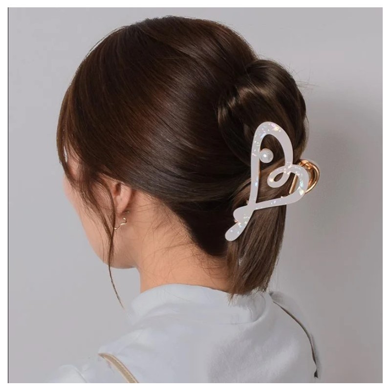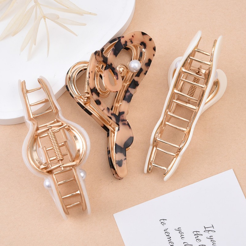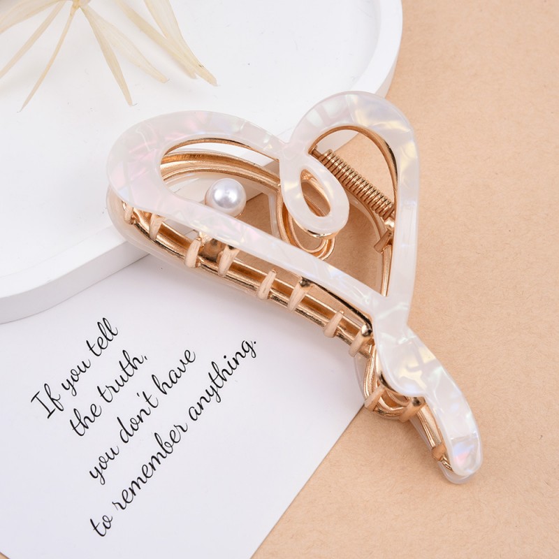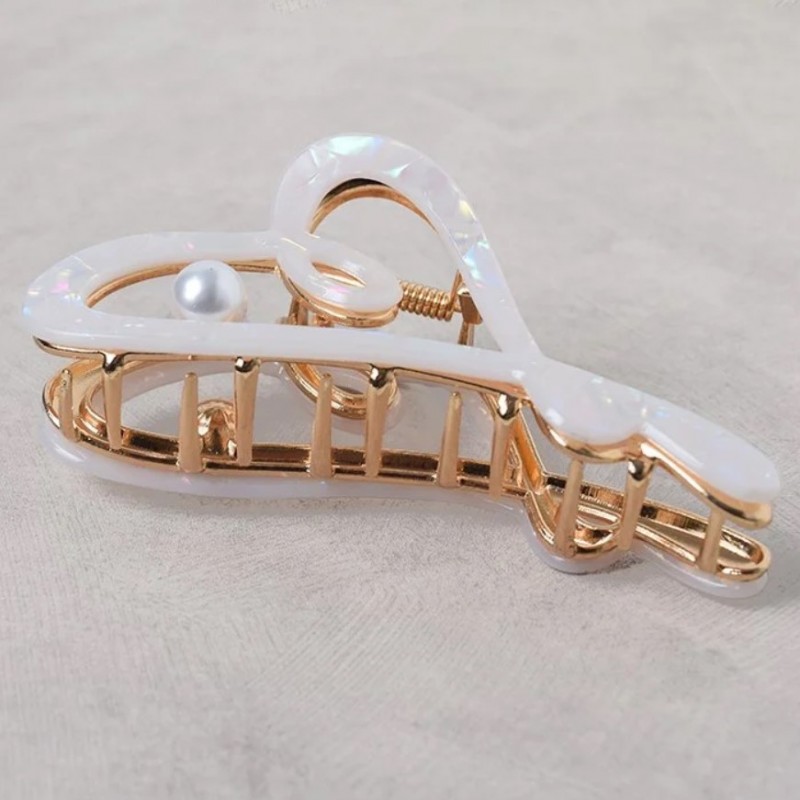 Spinka do włosów, klamra metalowa masa perłowa biała XL 12x6cm SP342B