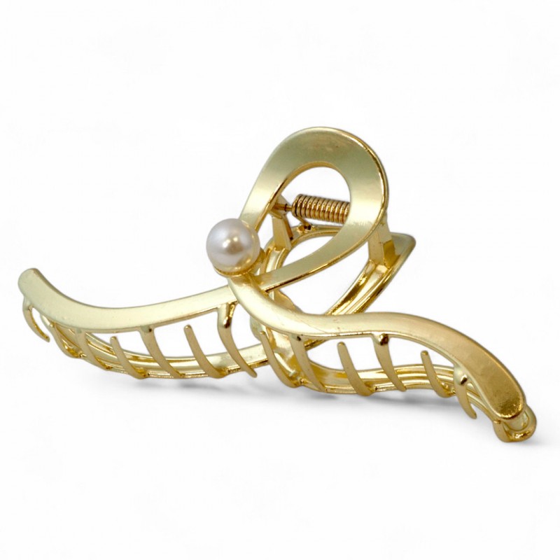 Spinka klamra do włosów XL metalowa złota z perłą 12,5 cm SP377