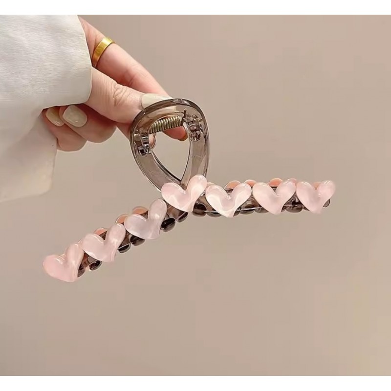 Spinka klamra do włosów z serduszkami XL 13×6 cm różowa SP352R