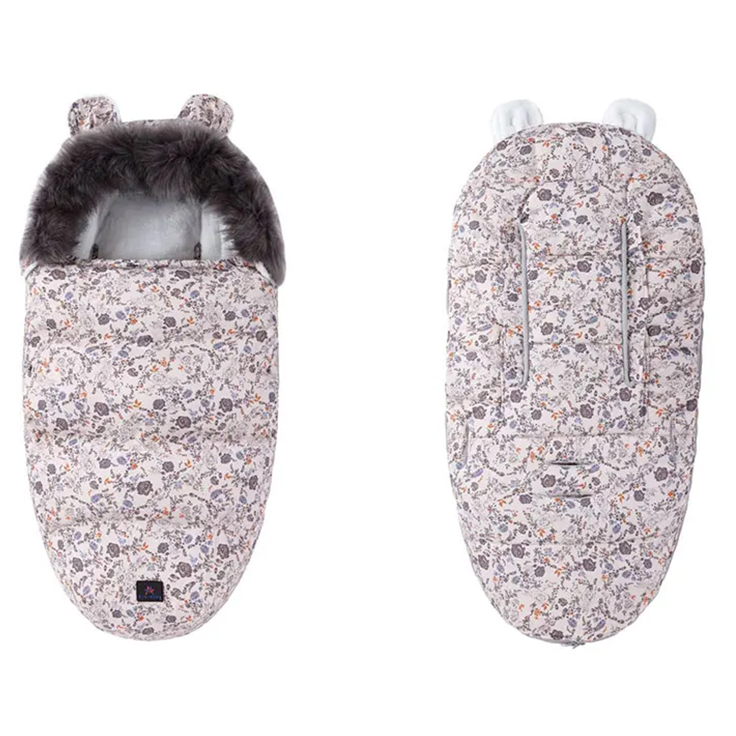 Ten śpiwór pasuje do większości wózków spacerowych, gondol i nosidełek dostępnych na rynku. Dzięki pionowym otworom na pasy, można go również używać na sankach. Wnętrze śpiworka zostało obszyte delikatnym materiałem, który zapewnia dziecku pełen komfort podczas spacerów na świeżym powietrzu.