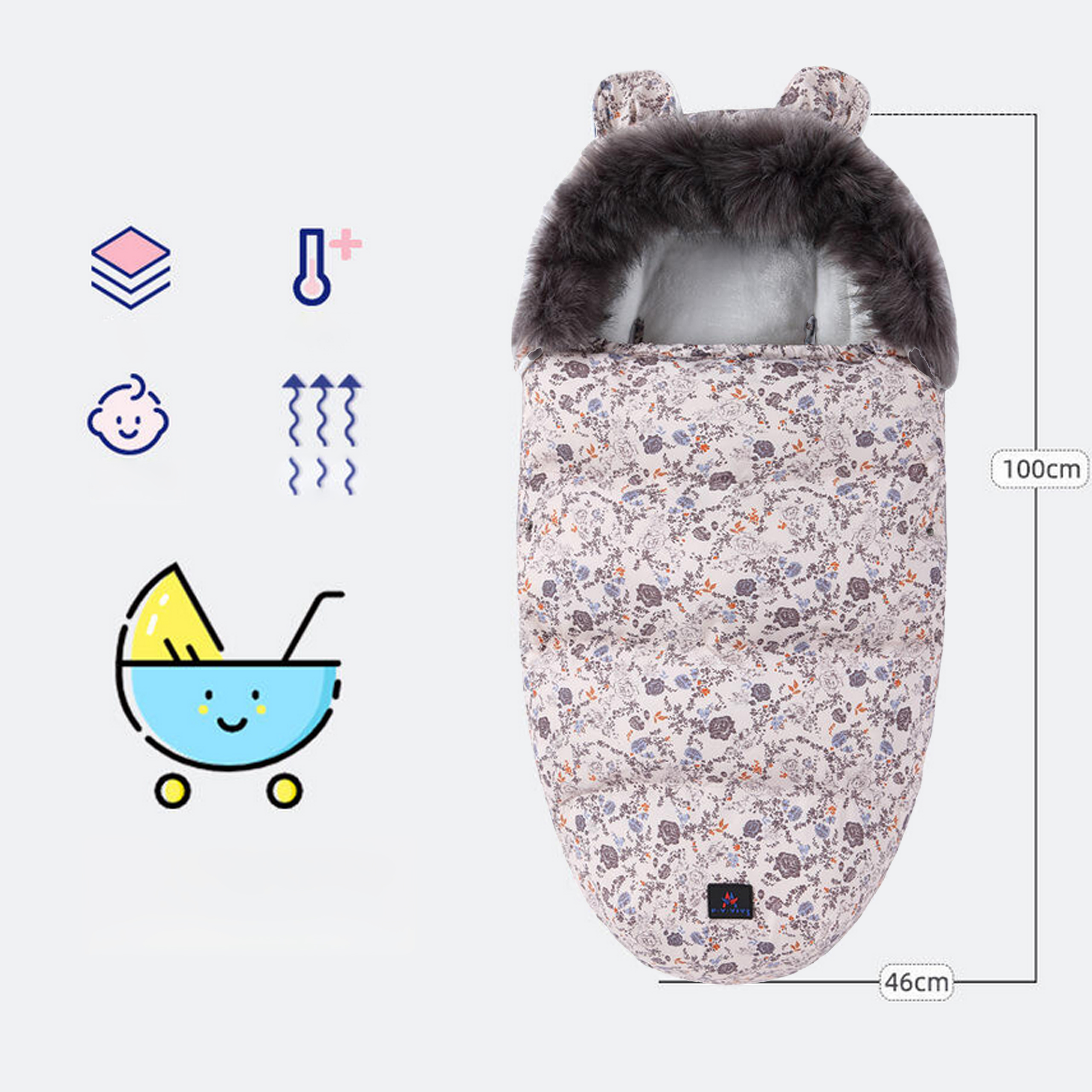 Kaptur śpiworka posiada futerko, które chroni maleństwo przed zimnym wiatrem i mroźnym śniegiem. Materiał zewnętrzny jest wodoodporny, a wypełnienie utrzymuje ciepło wewnątrz, co sprawia, że śpiwór jest idealnym rozwiązaniem na zimne dni.