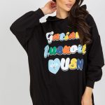 Komplet dresowy składający się z bluzy oraz spódnicy. Bluza z długim rękawem oraz kapturem. Na przodzie ozdobny nadruk. Rozkloszowana spódnica zapinana na kryty zamek.