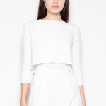 Bawełniany komplet. Bluzka typu crop, z długim rękawem oraz ołówkowa spódnica o klasycznym fasonie.