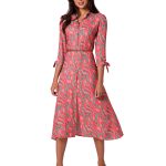 Rozkloszowana spódnica midi z wysoka talią i ozdobnymi guzikami. Spódnica zapinana na kryty zamek.