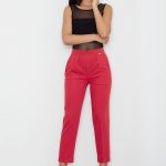 Bawełniana spódnica z klapą z przodu, stanowi doskonałe rozwiązanie dla eleganckich kobiet, ceniących styl oraz wygodę. Gruby pasek idealnie podkreśla talię.