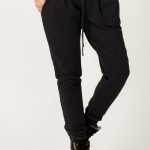 Spodnie z dzianiny dresowej w kolorze ciemnoszarym, u dołu wykończone szerokim ściągaczem, który ma ok 10 cm szerokości. Bardzo modne i wygodne.