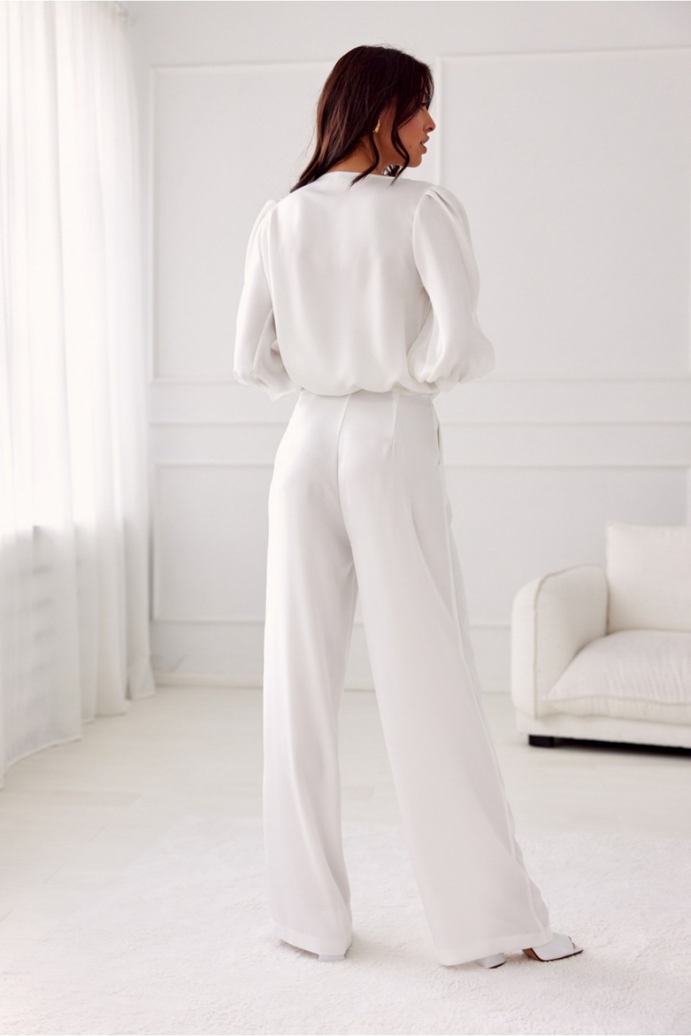 Spodnie Elsa są wykonane z delikatnego, satynowego materiału, który zapewnia niesamowity komfort noszenia, ale także dodaje elegancji każdej stylizacji. Spodnie posiadają luźne i szerokie nogawki, które nadają im nowoczesny i modny charakter. Wysoki stan oraz wbudowany szeroki pas pięknie podkreślają talię, co optycznie wyszczupla sylwetkę. Kieszenie po bokach oraz zamek błyskawiczny wbudowany z boku spodni sprawiają, że są one nie tylko stylowe, ale także praktyczne. Spodnie Elsa są idealnym wyborem na rozmaite okoliczności, od formalnych spotkań biznesowych po wieczorne wyjścia. Można je świetnie zestawić z elegancką koszulą i szpilkami na bardziej oficjalne spotkania, albo z luźnym swetrem i trampkami na bardziej casualowe okazje.
