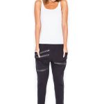 Dresowe spodnie szare z bawełny, zwężane nogawki, w pasie sznureczek, kieszenie po bokach obszyte kontrastową lamówką.