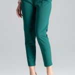 Spodnie cygaretki o długości 7/8 z przodu z zakładkami ułatwiającymi układanie się na figurze. Model z kieszeniami na skos, zapinane z przodu na zamek.