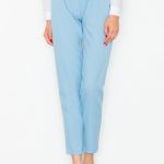 Spodnie damskie z podwyższonym stanem, o długości 7/8. Zapinane na zamek i guziki. Po bokach kieszenie wsuwane. Idealne na wiele okazji.