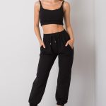Spodnie dresowe damskie z gumką i wiązaniem w pasie. Po bokach kieszenie wsuwane.