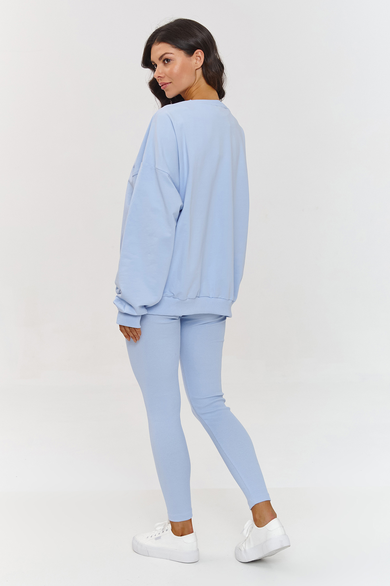 Komplet dresowy to idealny wybór dla kobiet szukających wygody i stylu na co dzień. Zestaw składa się z oversizeowej bluzy, prążkowanego topu i legginsów, które razem tworzą spójną, modową całość. Dopasowane, prążkowane legginsy świetnie podkreślają sylwetkę, zapewniając jednocześnie wygodę i komfort. Dopasowany top i bluza w luźnym kroju z głębokim dekoltem w serek doskonale równoważą całość i dodają kobiecego uroku. Materiał jest miękki i przyjemny w dotyku, idealny na codzienne noszenie. Połączenie klasycznej bluzy z topem i prążkowanymi legginsami sprawia, że stylizacja zyskuje lekko sportowy charakter. Dzięki uniwersalności ten zestaw doskonale komponuje się z białymi sneakersami, tworząc wygodny outfit na co dzień. Szukałaś kompletu, który łączy elegancję z komfortem? Komplet dresowy z topem i legginsami to must-have w Twojej szafie! To idealne połączenie wygody, funkcjonalności i modnego designu. Odpowiedni na różne okazje, od relaksu w domu, po spotkania ze znajomymi czy spacery w parku. Wybierz nasz komplet, który doda Ci pewności siebie i sprawi, że poczujesz się komfortowo w każdej sytuacji!