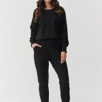 Ten damski komplet dresowy to idealne połączenie komfortu i stylowego, codziennego looku. Wykonany z wysokiej jakości materiału o składzie 95% bawełna i 5% elastan, zapewnia miękkość, elastyczność oraz przewiewność dzięki czemu świetnie sprawdzi się przez cały rok. Bluza ma luźny, swobodny krój z obniżoną linią ramion, co nadaje jej nowoczesnego charakteru i sprawia, że doskonale układa się na każdej sylwetce. Na przodzie umieszczono małe, haftowane logo, które subtelnie podkreśla markowy charakter zestawu. Dopasowane spodnie z elastyczną talią i wygodnymi bocznymi kieszeniami to idealna propozycja na co dzień, łącząc funkcjonalność z kobiecym fasonem. Nogawki zakończone są ściągaczami, dzięki czemu spodnie dobrze trzymają się w miejscu i podkreślają nogi. Ten komplet sprawdzi się zarówno jako domowy zestaw, jak i stylizacja na miasto. Minimalistyczny design, perfekcyjne dopasowanie i wygoda na co dzień to obowiązkowy element nowoczesnej garderoby!